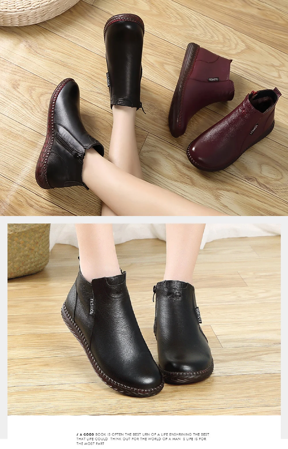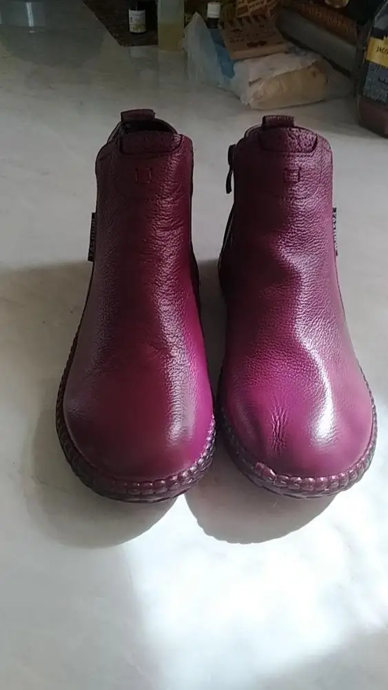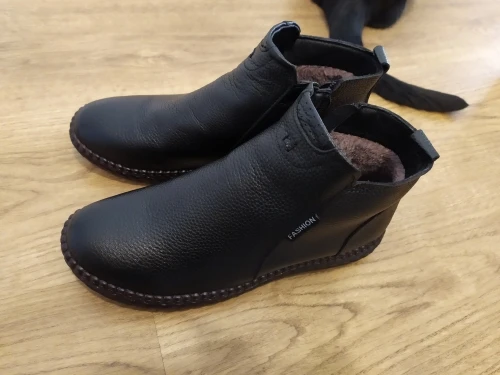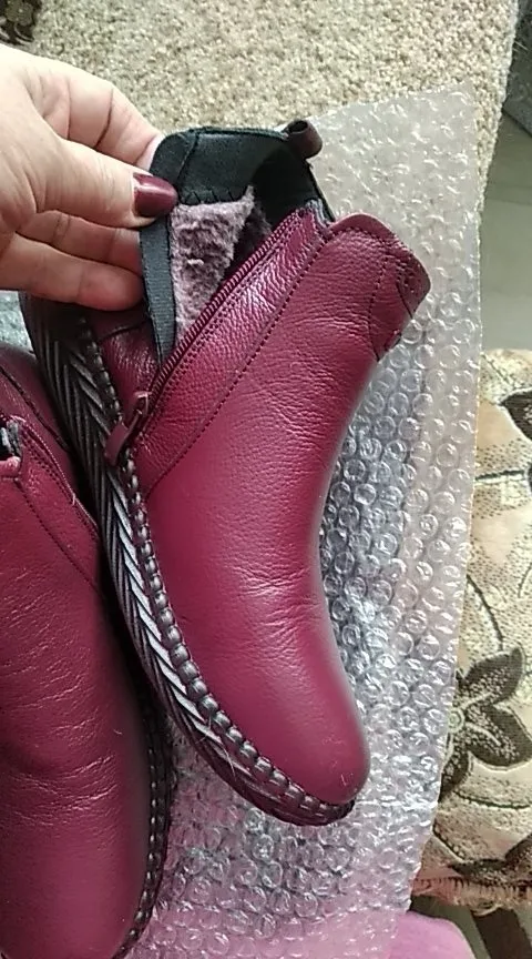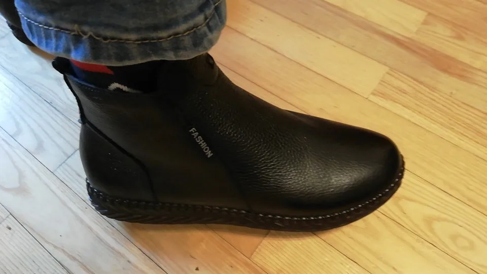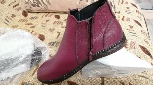 Ботинки нормальные на осень. Сделаны не плохо, изъянов нет. Молнии работают хорошо. Верх - свиная кожа, подкладка- искуственный мех. На 37 размер брали 7.5. По размеру подошли хорошо, есть небольшой запас. Доставка в Моск. Обл. заняла больше месяца, если учесть, что из Китая на таможню во Внуково посылка пришла за две недели, а все остальное время она валялась в сортировочном центре Внуково. Ну продавец в этом не виноват, продавца рекомендую, отправил заказ быстро.
