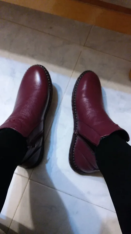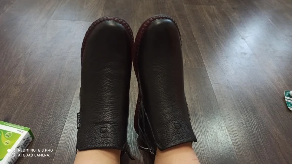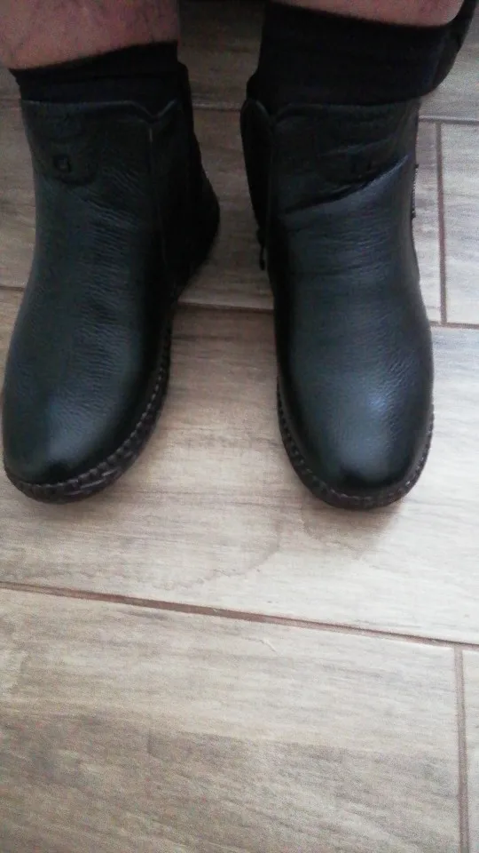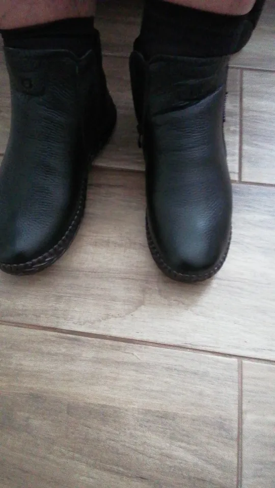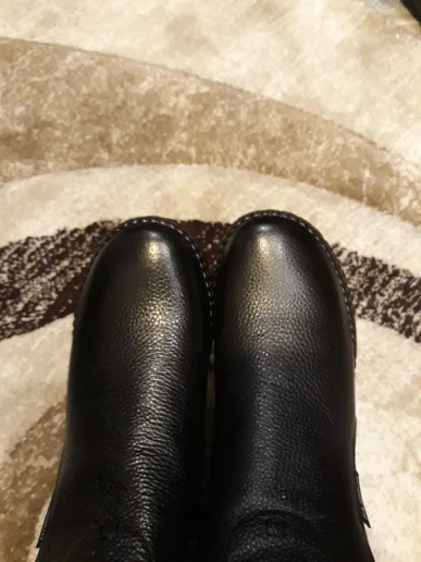 1. Заказ дошел довольно быстро, упакован хорошо. 2. Это не "кожа коровы", как пишет продавец. Это кожа свиньи. Если кто постарше помнит наши детские прошитые сандалики, вот из такой вот кожи ботинки. Соответственно, дырок в ней от щетины полно, и довольно больших, такова особенность свиной шкуры. Ну и чтобы не ходить в мокрой обуви, нужно будет обильно смазывать кремом и пропитками. 3. Воняют аццки. Скорее всего, уже чем-то пропитаны, каким-то минеральным маслом, а оно страсть какое вонючее. Потом, конечно, выветрится, но сейчас пришлось завернуть обнову в два мешка на хранение. 4. Относительно размера: у меня нога плоская, большой палец нетолстый, но все равно немного жмет родной размер, и именно в большом пальце СВЕРХУ. Если вынуть стельку, то тогда все норм. Следовало взять на размер больше, но чоуж, буду разнашивать)) А вы, дорогие покупательницы, берите +1 к своему.