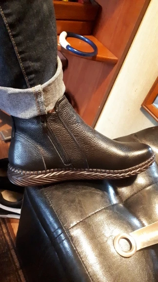 ботиночки понравились, в Сибири на позднюю осень само то. Нога 24,0, не узкая, начинает расти косточка с мохровым носком сели хорошо. Продавца рекомендую, консультирует.