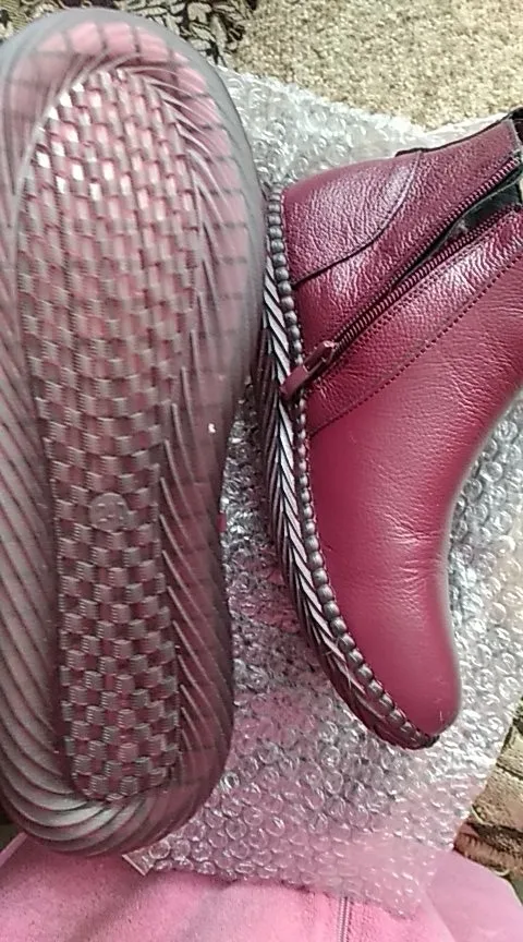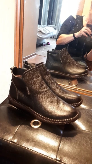 Очень красивые ботинки. К сожалению, один помялся, надеюсь в носке разгладится. Посылку получила к своему юбилею. Так что можно считать что получила подарок ко дню рождения. Это вторая пара обуви, которую заказала у этого продавца и очень довольна. Буду делать еще заказы. Продавцу большое спасибо.