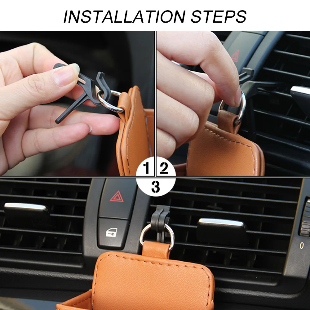 Сумка для хранения автомобиля, подвесная кожаная коробка-органайзер на вентиляционное отверстие для приборной панели, очков, держатель для телефона, коробка для хранения, автомобильные аксессуары для автомобиля