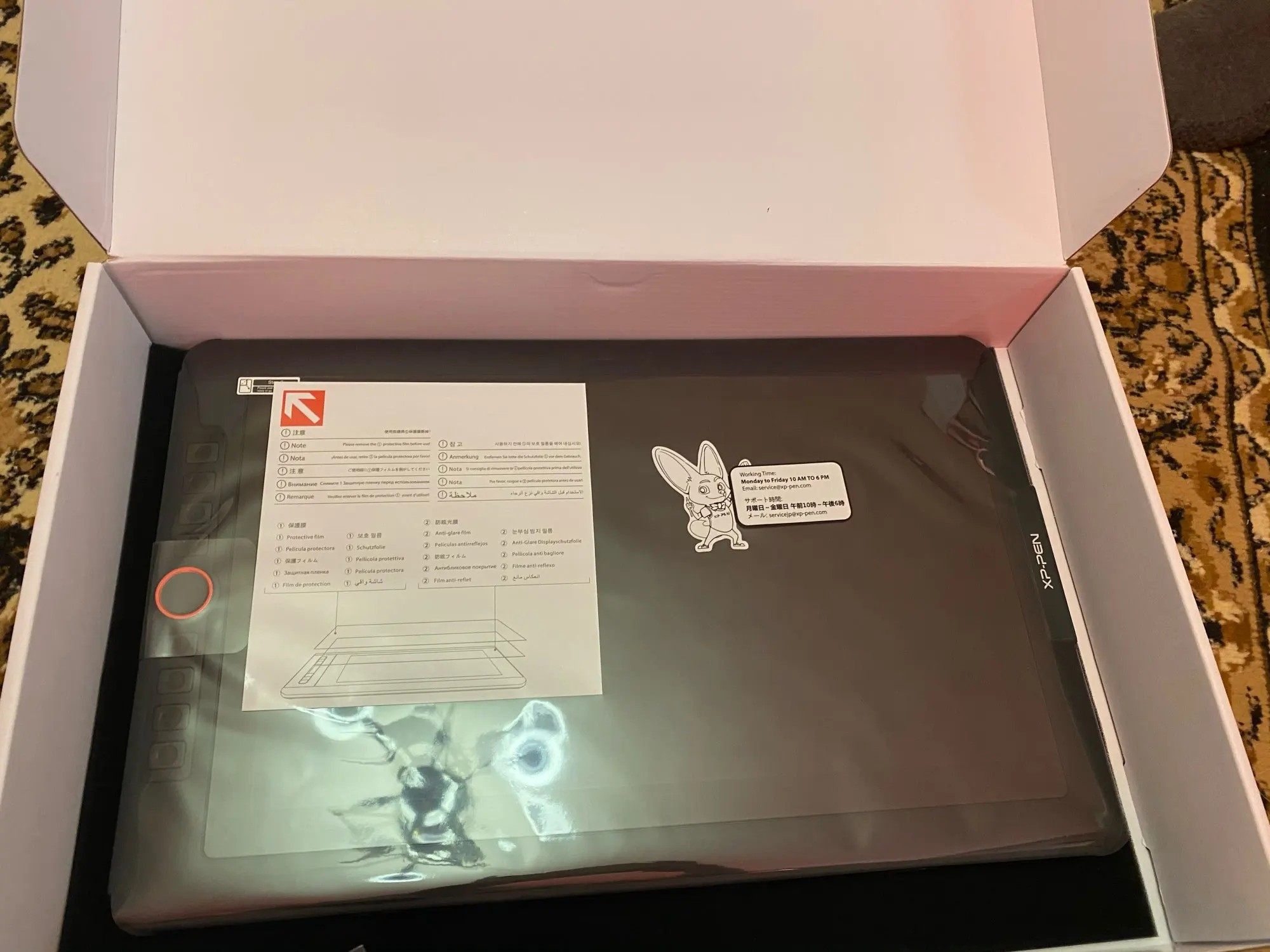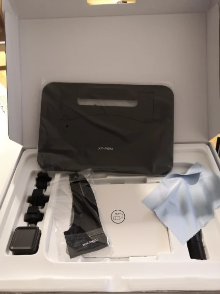 Чудесный товар! Это огромный графический дисплей с матовым экраном и защитной пленкой+заводская защитная пленка. Также в коробку входила стандартная, но очень колоритная, на мой взгляд, комплектация: салфеточка, подставка, тубус с пером и стержнями, коробка с документацией и коробка с проводами, также три различных вилки которые присоединяются к USB блоку. Это значит что не смотря на местонахождение вы без проблем сможете подключить экран к источнику питания, в том числе, если есть возможность, его можно и подключить полностью к ноутбуку или компьютеру. Доставили его быстро,9 дней до некрупного города в Подмосковье.Хорошая упаковка. В плане работы все отлично, шустрый, удобный, в случае чего всегда есть настройки. Единственное, что для меня показалось маленьким минусом- очень чувствительное колесико. При перемещении руки его легко задеть и случайно задействовать горячую клавишу(например, тот же масштаб, зум). Ну это чисто придирки, ведь к нему еще привыкать и привыкать(для новичков).