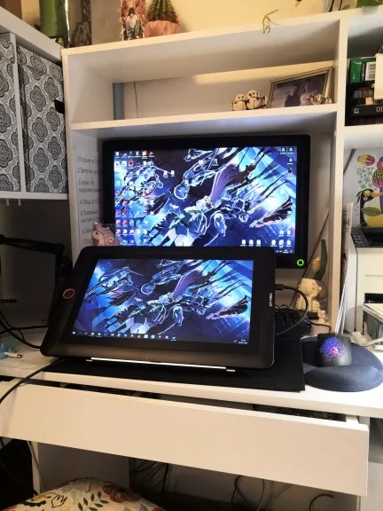 Планшет и сервис фантастические за эту цену. Цветопередача экрана яркая и сочная. Работает с PS, AI, SAI, ZBrush и т.д. В драйвере можно задать горячие клавиши для каждой программы. Параллакс минимальный, в работе не заметен. Хорошая реакция на нажатие, быстрые штрихи, при медленном рисовании прямых линий нет «волн». На современных ноутах работает от HDMI и 2-х USB. Для использования в качестве дополнительного монитора в настройках дисплея выберите «Расширить эти экраны». Качественная крепкая сборка. Размер оптимальный. Не приходится часто увеличивать при проработке деталей. На экран установлена матовая защитная плёнка. Месяц работы по 6+ часов, и почти без царапин. Удобные аксессуары. Подставка в комплекте с одним углом наклона ~30°. Советую сразу брать комплект с регулируемой. В магазине для дисплея есть чехол на молнии. Доставка до Омска – 6 дней, курьером. Это официальный магазин производителя, не бойтесь насчёт гарантии и поддержки. Рисую с большим удовольствием.