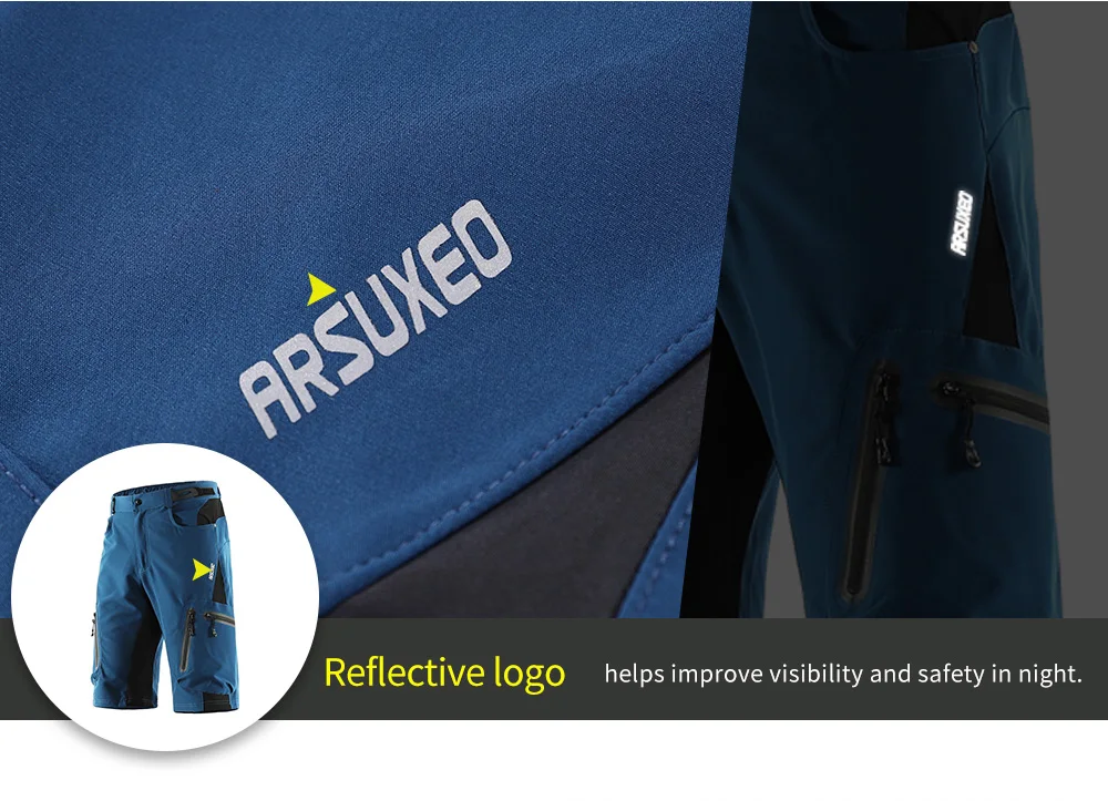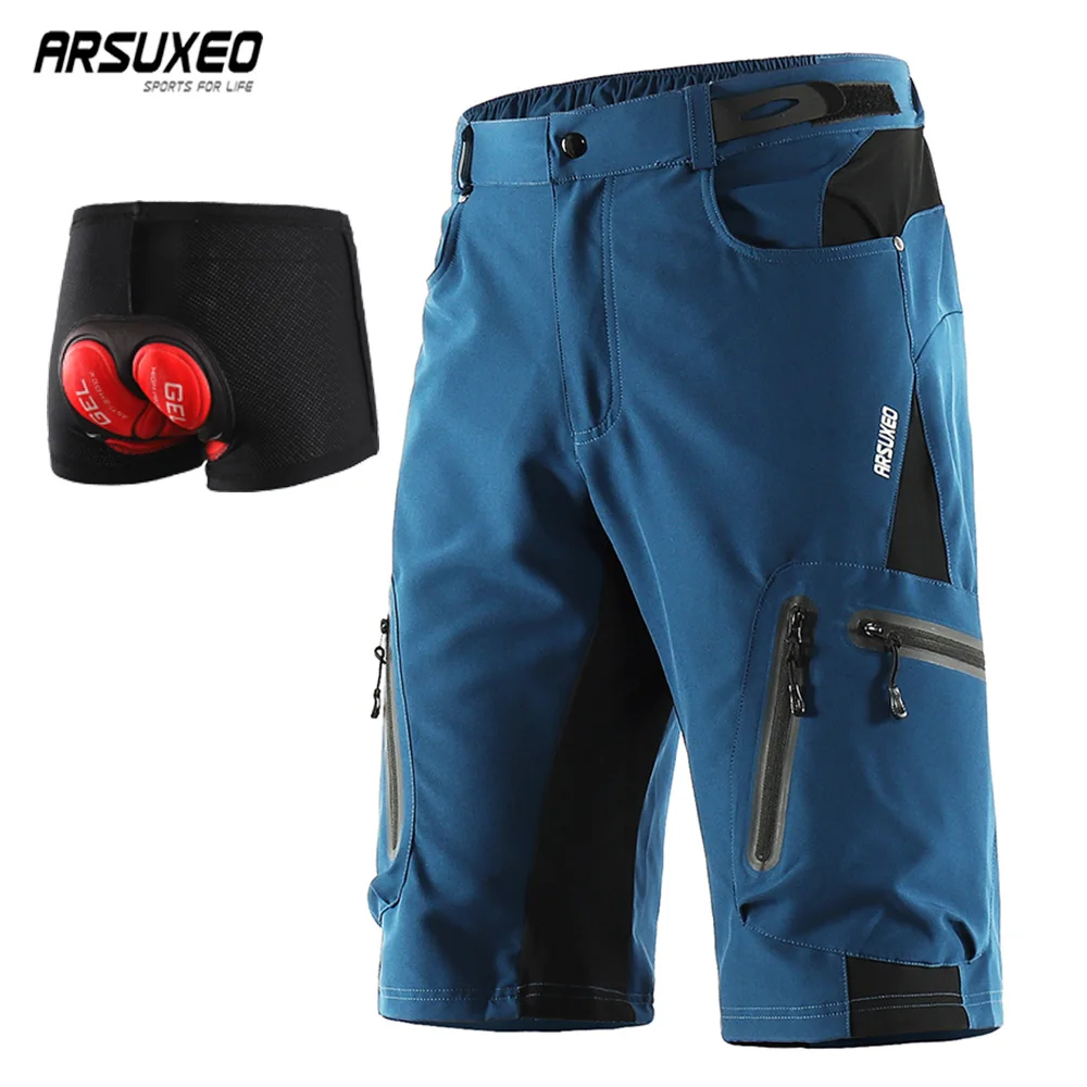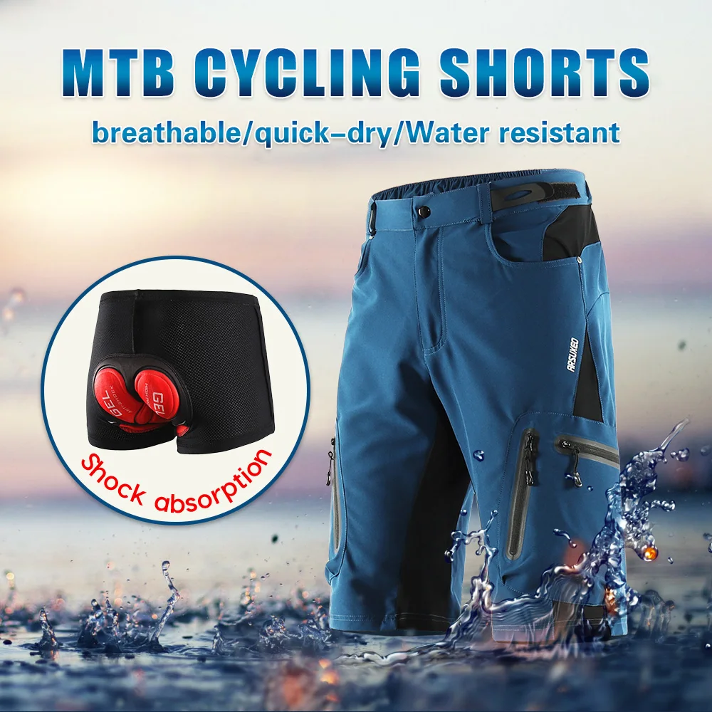 Велосипедные шорты ARSUXEO, мужские, для горных велосипедов, с нижним бельем, водонепроницаемые, свободные, быстросохнущие, 1202