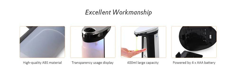 Особенности:-Этот элемент имеет встроенный инфракрасный смарт-датчик, мыло будет выходить автоматически, как только положите руку, посуда и т. Д.-Полностью Автоматическая и без касания операция, чтобы избежать второй перекрестной инфекции.-Инновационный дизайн без капель устраняет отходы и беспорядок с столешницей.-Помогает родителям подтвердить мотивацию детской стирки вручную.-Большой, легко заполняется.-Идеально подходит для лосьонов жидкого мыла или дезинфицирующих средств и т. д.-Идеально подходит для ванной комнаты, кухни, офиса, школы, больницы, отеля и ресторана.Спецификация:-Материал: АБС-пластик с гальваническим покрытием-Емкость: 400 мл-Беспроводная, питание от 4 x AAA батарея (не включена)