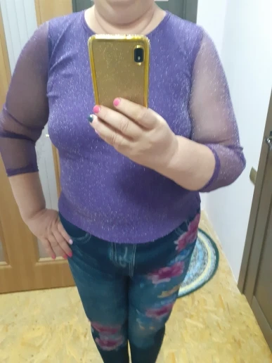 Заказала 12.12.2020. В Тобольск Тюменская область пришла посылка в офис доставки на почту 26.12.2020. Посылка отслеживалась. Цвет совпадает с фото. Есть подклад, только рукава без подклада. На рукавах торчат ниточки, но это не беда, поработала ножницами и всё в порядке. Выточек нет, сшита как футболка. Нарядная блузка. Мои параметры ог -96, от - 88, об - 106; рост -160 см. Заказала 4XL. Очень хорошо села. Я очень довольна, надену на Новый год. Блузка искрится при искусственном освещении. Рекомендую. Процветания продавцу.