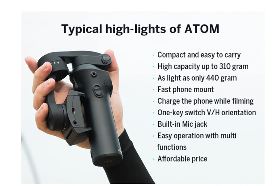 Snoppa Atom складной карманный Дрон -Размер затрудняетесь в выборе правильного размера 3-осевой ручной шарнирный стабилизатор для камеры для iPhone samsung XiaoMi huawei для Gopro 6 7 PK гладкой 4