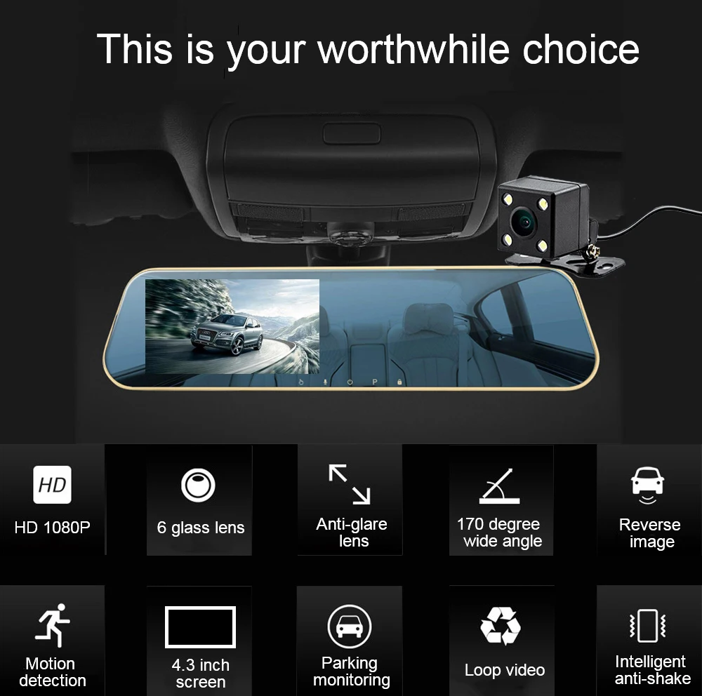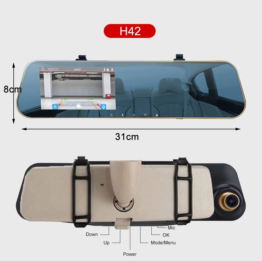 Видеорегистратор 4,3 дюйма, Автомобильный видеорегистратор, цифровой видеорегистратор, авторегистратор, видеокамера FHD 1080P, камера заднего вида, Автомобильное зеркало заднего вида