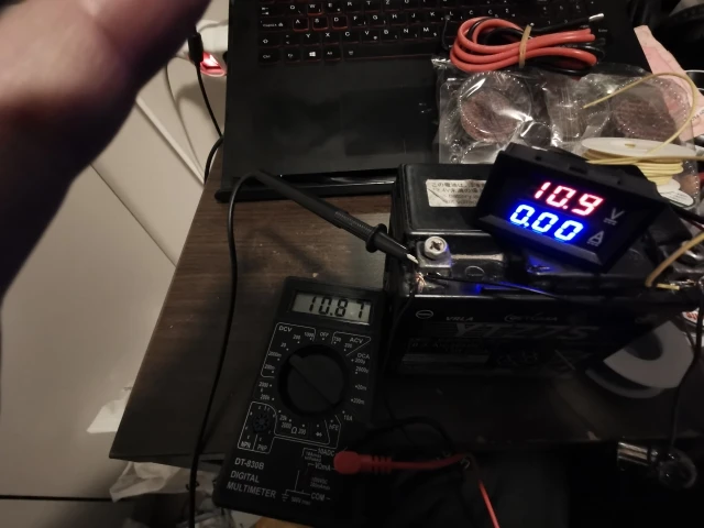 Хорошее измерение напряжения из коробки. Не уверен в том, что падение на этой маленькой батарее было значительным на нагрузке, поэтому нужно будет видеть, когда подключено непосредственно к зарядному устройству. Питание от тонкого красного и черного провода.