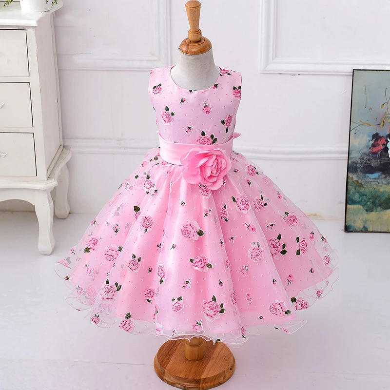 2022 Летние Детские платья для девочек, одежда, платье для маленьких девочек с цветами, розовое платье принцессы на день рождения, вечернее свадебное платье