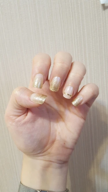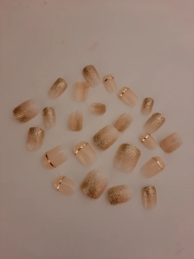 Накладные ногти с гелевым покрытием, с золотыми блестками, телесного цвета, короткие, с клейкими вкладками, для ежедневного использования