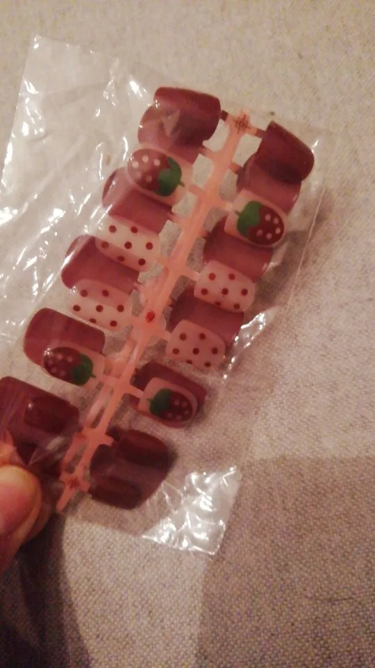 Милые ногти, но не поставляются с клеем или двухсторонними наклейками, чтобы наклеить их на ногти. Это только ногти.