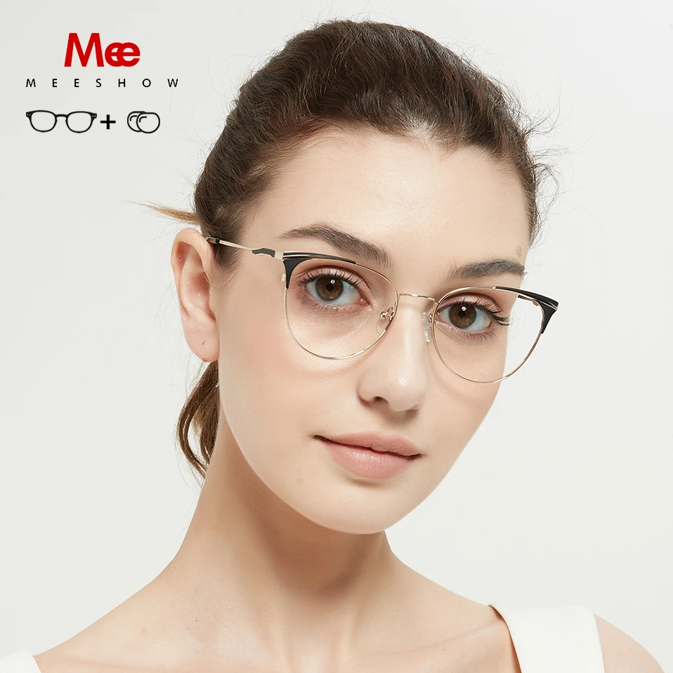 Женские очки с оправой для зрения MEESHOW, очки кошачий глаз из тит...