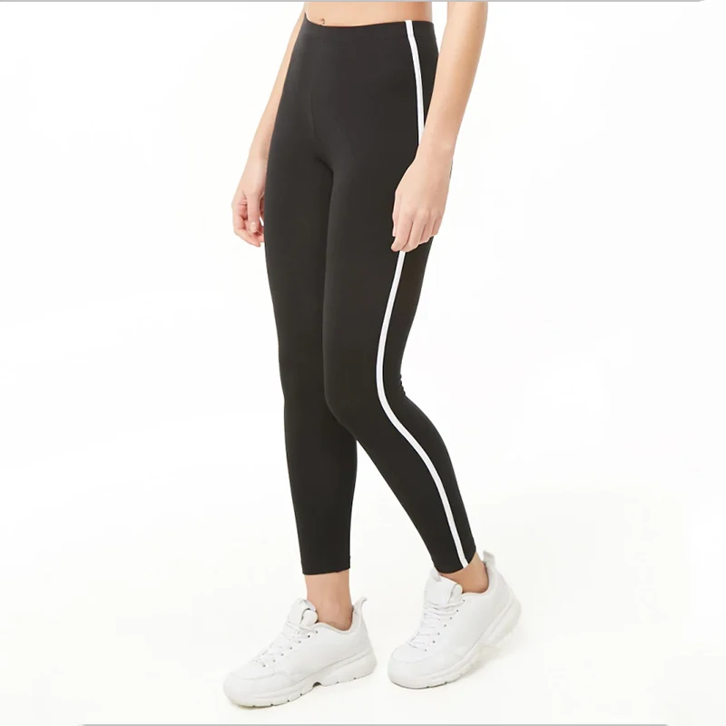 Леггинсы женские, черные, повседневные, однотонные, с белыми линиями, с высокой талией, уличные, для отдыха, для осени