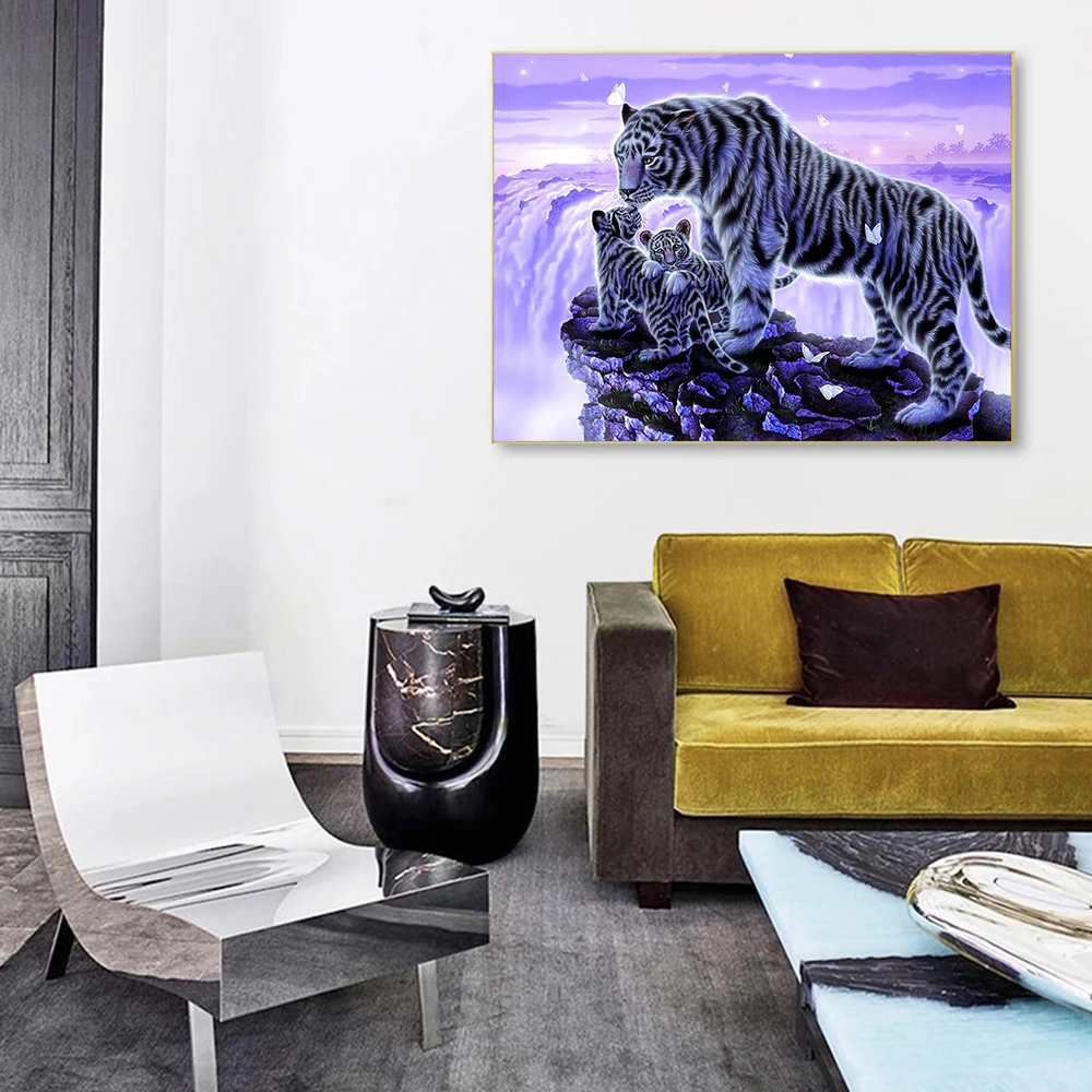 Алмазная 5d картина сделай сам, вышивка с изображением животных, облака, скалы, тигра, вышивка крестиком, квадратная, круглая, дрель, мозаика, декоративное искусство, хобби