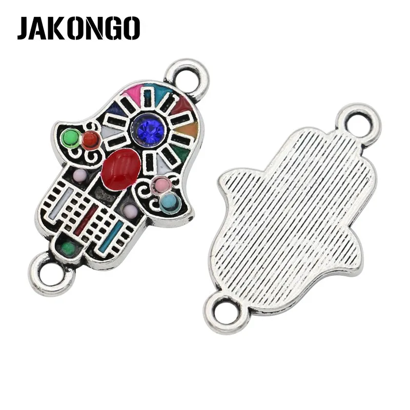 JAKONGO античный посеребренный Красочный Кристалл Фатима ручные разъемы для изготовления ювелирных изделий Аксессуары для браслета DIY ремесло 24x14 мм