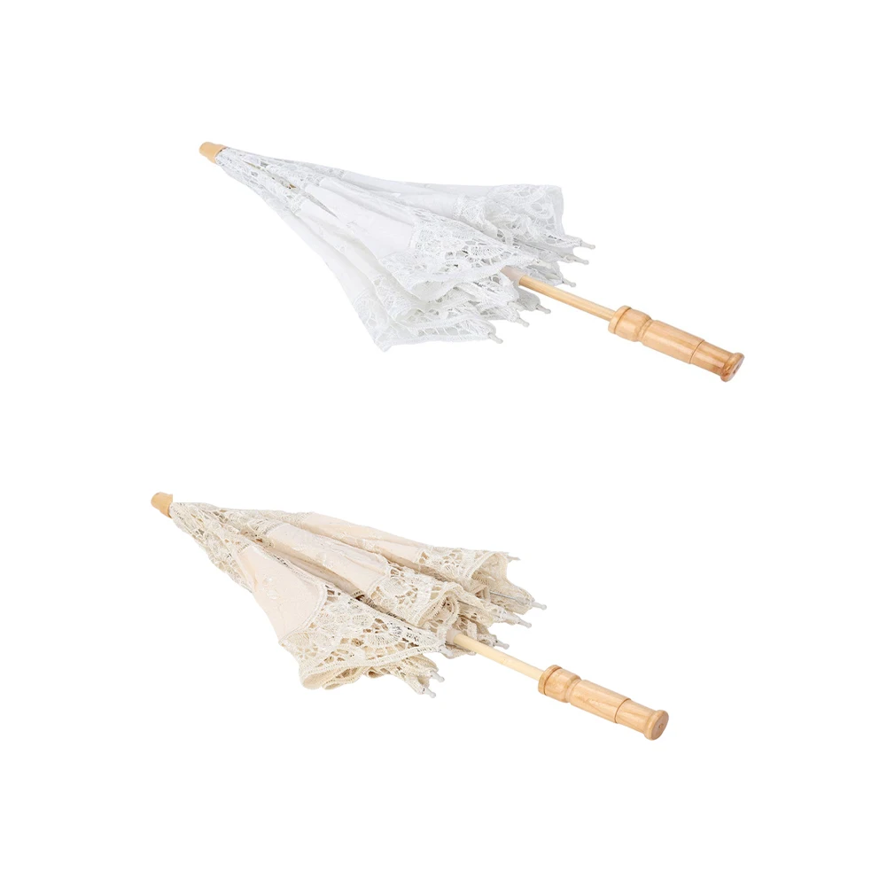 Женский кружевной зонт ручной работы, шелковая ткань, кружевной зонт с цветочной вышивкой, Свадебный зонт для невесты, фотозонт белого и бежевого цвета