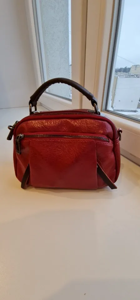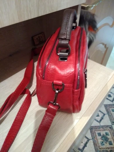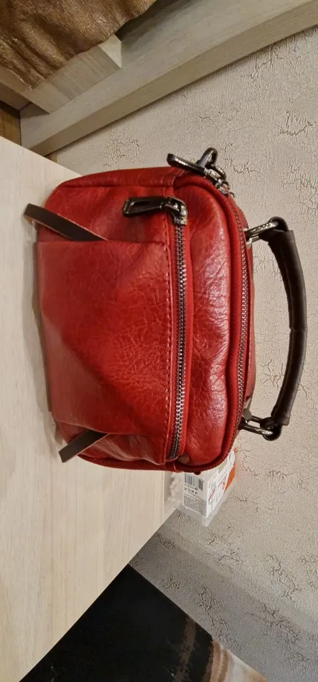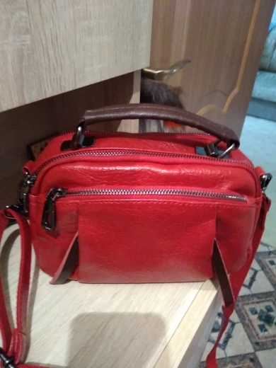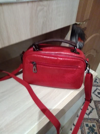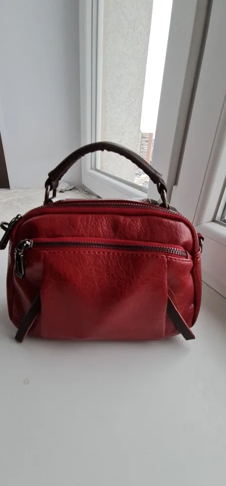 сумка супер, маленькая, и очень вместительная, очень довольна.Есть одно но, почему то ручка на сумке другого цвета. Сумка красная а ручка коричневая.......