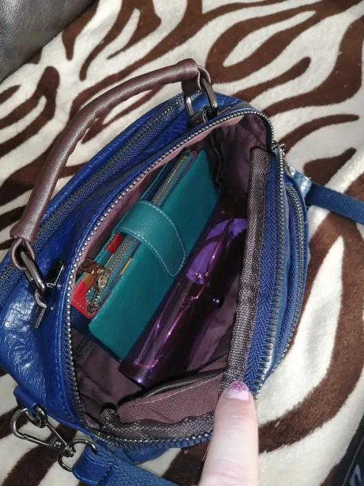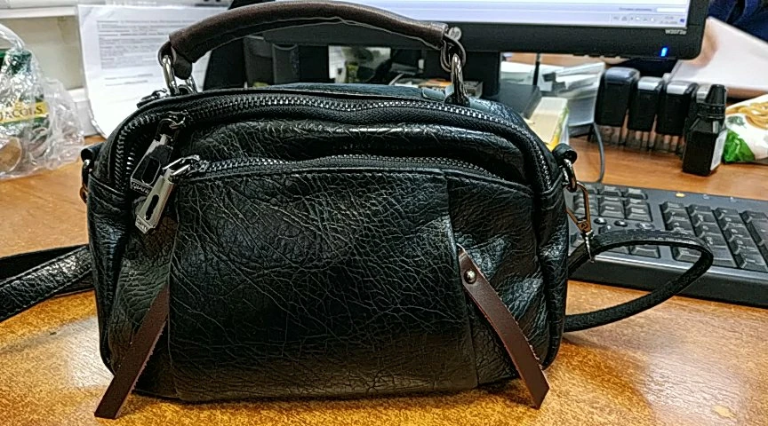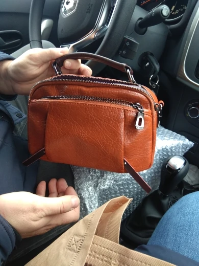 Супер сумочка, а главное быстрая доставка до С-Пб. Заказ был сделан 15 числа, а 24-го я уже забрала свою посылку на кассе в Пятёрочке. Упаковано все отлично, внутри дутик, снаружи пузырчатая пленка и все это ещё в красивом экологическом пакете. В сумочке бонус в виде резиночки для волос. "кожа" мягкая, приятная, молнии работают, на вид даже очень добротные, ремешок регулируется. Внутри кармашки для мелочей. Достаточно много чего можно положить в сумочку, не смотря на небольшие размеры: документы на машину, телефон, кошелёк, тушь, помада, карандаш, куча дисконтных карточек, наушники, сигареты с зажигалкой и по мелочи ещё. Хожу и ненарадуюсь своей обновкой. Продавца рекомендую