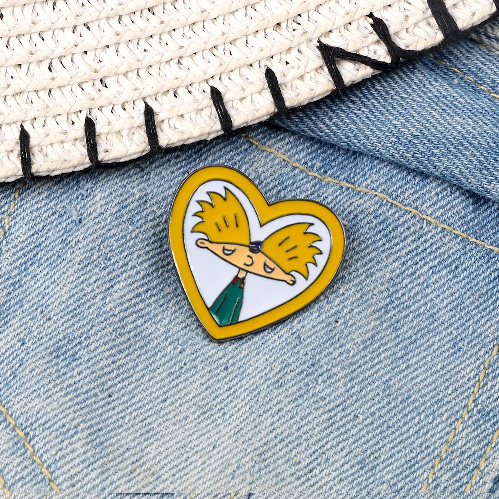 Индивидуальность забавное сердце Арнольд булавки значки Броши отворот булавка брошь мультфильм ТВ шоу Арнольд Кнопка ювелирные изделия унисекс аксессуары