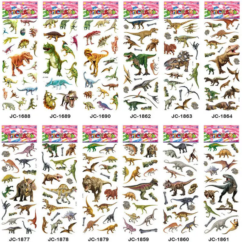 18 листов популярных мультяшных 3D Динозавров Юрского периода, Пузырьковые наклейки, пышные наклейки для девочек, для детей, подарок, наклейка для блокнота, декоративная этикетка