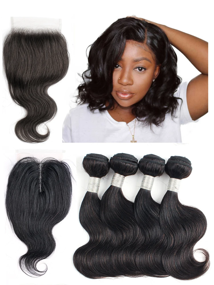 50 гшт. 4 пучка с застежкой, средняя свободная часть, прозрачное кружево, натуральные черные бразильские волнистые человеческие волосы без повреждений, короткий Боб, стиль