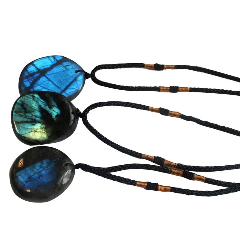 1 шт. подвеска в виде натурального сердца Лабрадорита, колье из лунного камня, плетеная косичка, подвесное украшение для мужчин и женщин