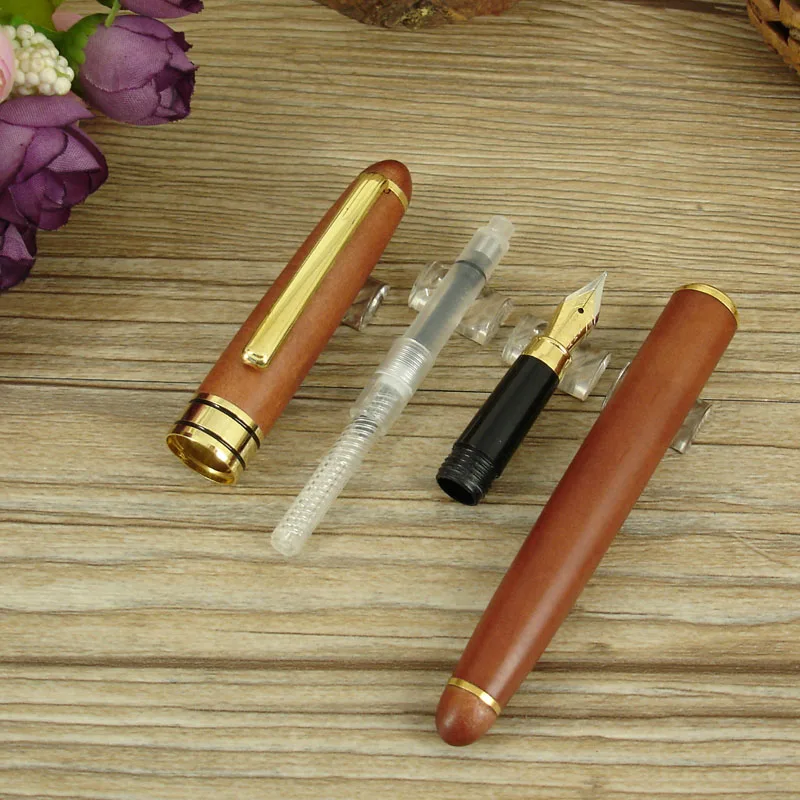 ACMECN деревянная перьевая ручка классический MB стиль без логотипа чернильная ручка с поршневым преобразователем чернил Ретро деревянная ручка с колпачком золотые акценты