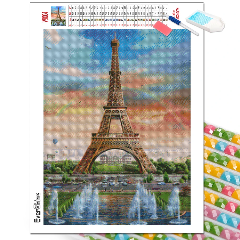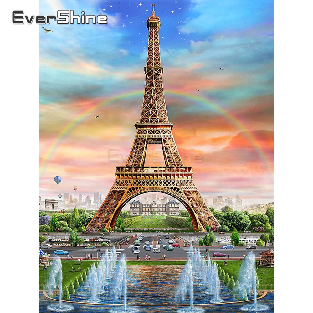 EverShine 5D алмазная живопись Эйфелева башня Картина Стразы Алмазная вышивка полная Dsiplay ручная работа украшение дома