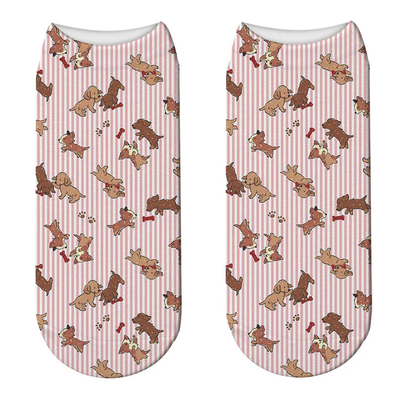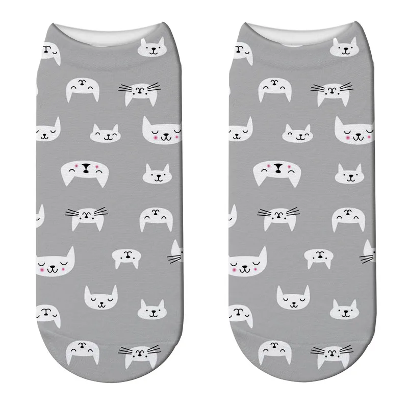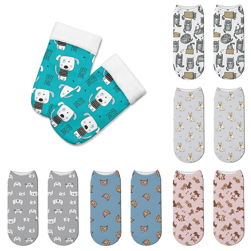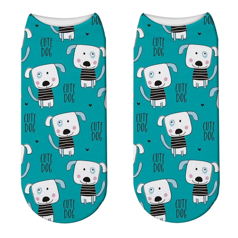 Модные 3D Носки с рисунком кошек и мультяшных животных, Милые Носки с рисунком собак, короткие носки, женские носки, забавные Носки с рисунком