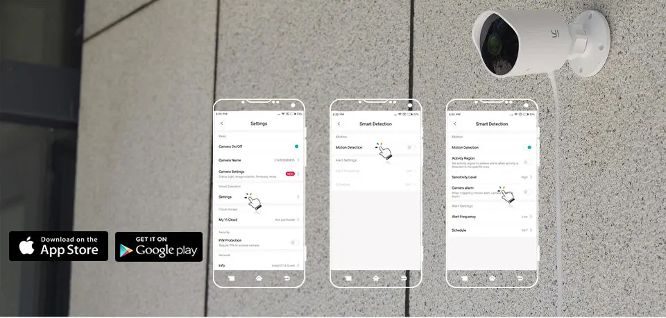 Благодаря использованию высокочувствительных интеллектуальных алгоритмов камера YI Outdoorподдерживает режим сигнализациипри вхождении в определенную область, сигнализации при обнаружении движения, настраиваемые периодысрабатывания сигнализации и чувствительность срабатывания, чтобы оповещать вастолько тогда, когда вы этого хотите. Применяемые оптимизированные алгоритмы обнаружения движения эффективно снижают количество ложных срабатываний сигнализации.
