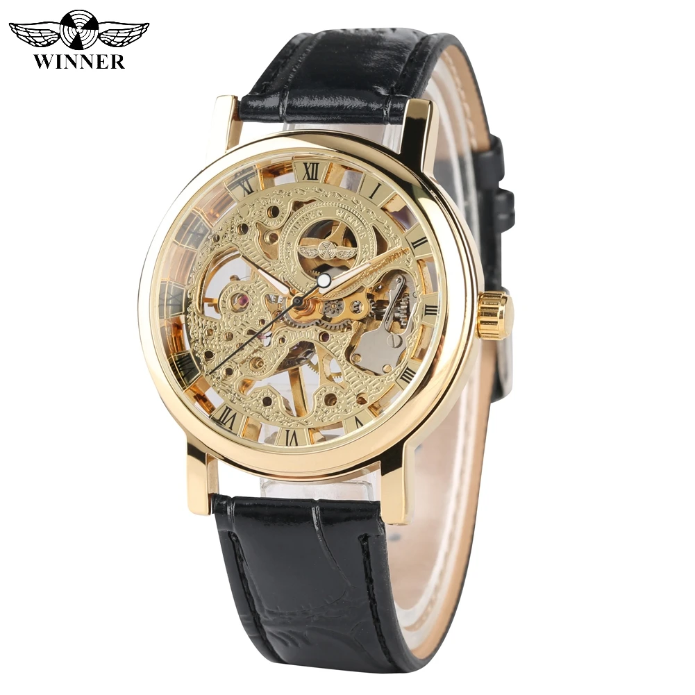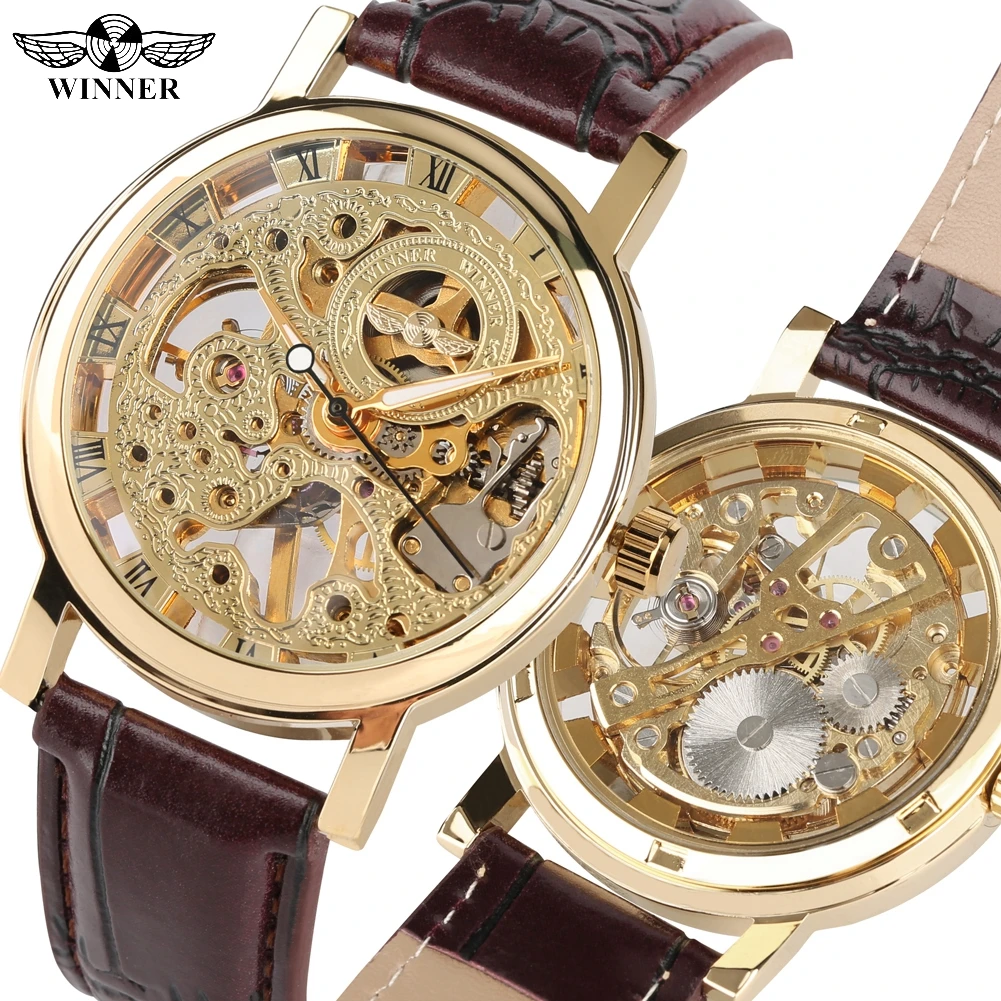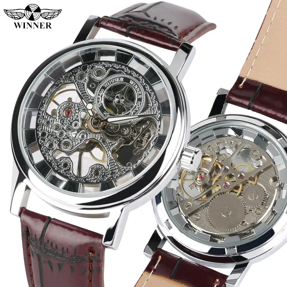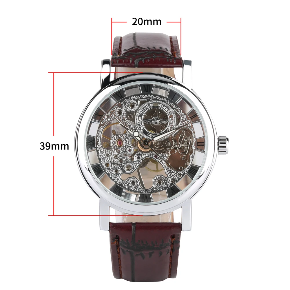 Vogue Мужская Скелет механические часы Роскошные Нержавеющаясталь Дело Механические часы для подростков руку-часы с автоподзаводом подарок для мальчика