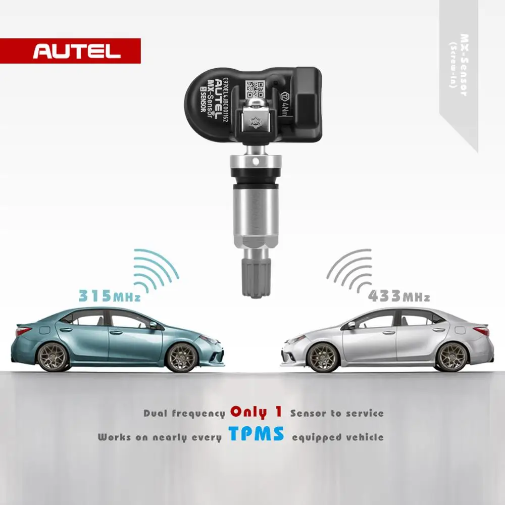 Autel MX-Sensor 1-Sensor (винтовой) 315 + 433MHz OE-Level 100% Clone-able Программируемый датчик подходит для 98% основных автомобилей с металлическими клапанами для TPMS