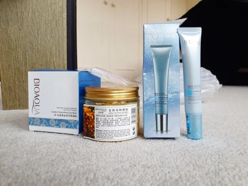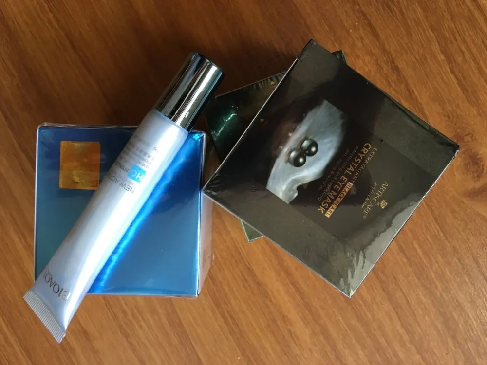доставка курьером. упаковано отлично. крем для глаз быстро впитывается, следов не оставляет. патчи держатся хорошо. про результат пока рано говорить.