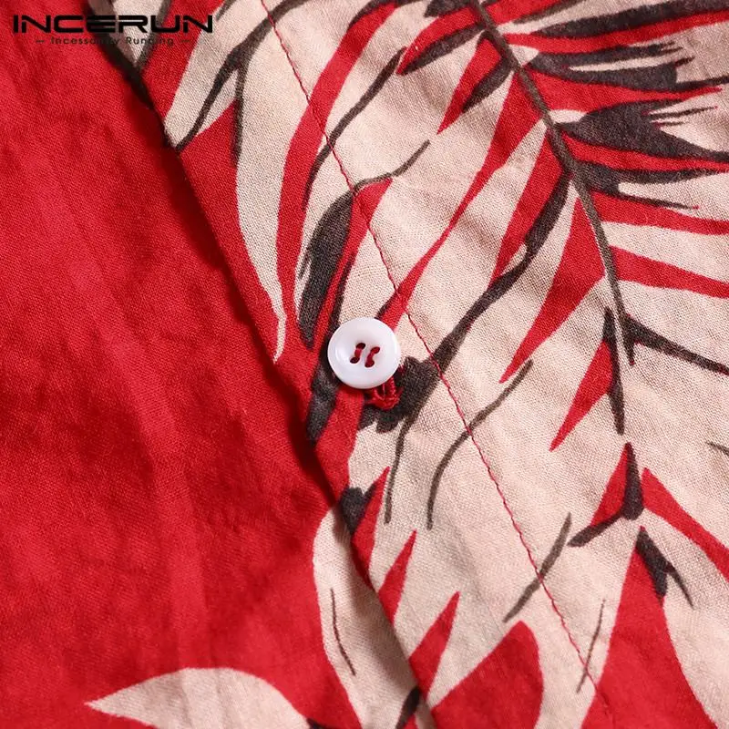 Гавайская красная летняя рубашка в гавайском стиле, мужские топы с цветочным рисунком, Повседневная рубашка с коротким рукавом, хлопковая рубашка на пуговицах, свободная пляжная сорочка для отпуска
