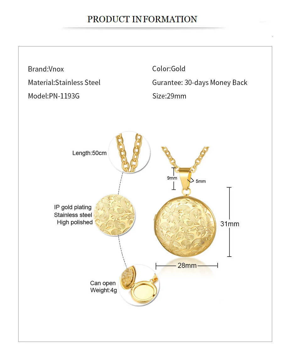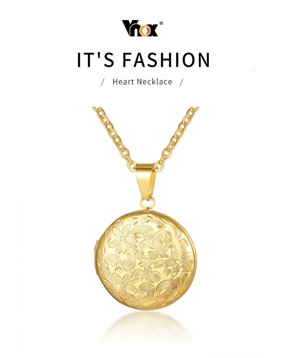 Женское Ожерелье Vnox, медальон с цветочной текстурой, из нержавеющей стали, золотого цвета