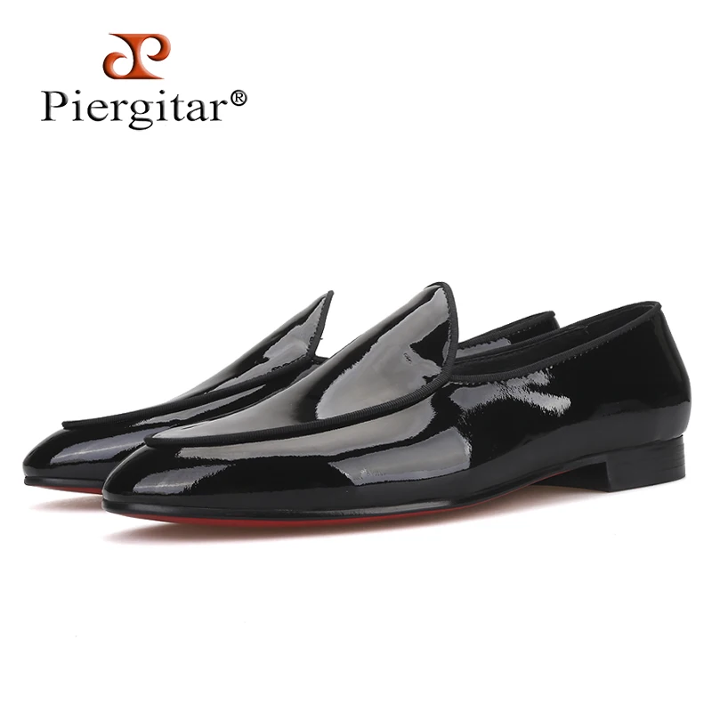 Новое поступление 2019, мужские черные туфли Piergitar из лакированной кожи, мужские классические туфли для вечерние НКИ и свадьбы, мужские мокасины ручной работы с красной подошвой