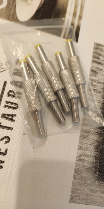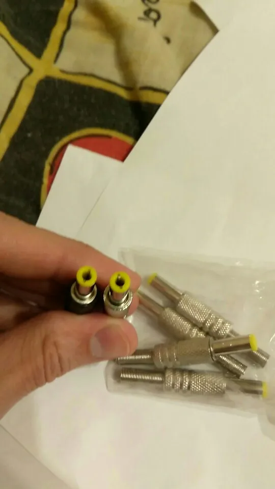 Доехало в Москву за 16 дней. Разъемы отличные, только есть нюанс. Это джеки 5.5х2.1 мм, на что, кстати, намекает и желтая окантовка разъемов. Так что для втыкания в 5.5х2.5 они не подойдут. Сами разъемы изготовлены великолепно.