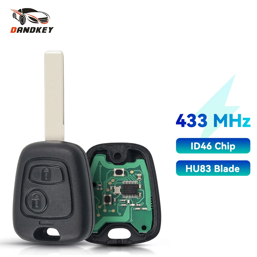 Ретранслятор Dandkey PCF7961, 2 кнопки дистанционного управления, полный ключ для PEUGEOT 307, для Citroen C1 C3, без ключа, 433 МГц, HU83 лезвие ключа