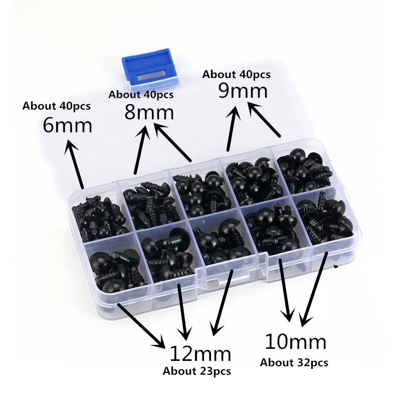 Защитные глаза из черного пластика, 175 шт.упак. 6-12 мм, принадлежности для поделок, плюшевые игрушки, аксессуары для кукол, амигуруми, глазные шарики для декора, винтовые глаза