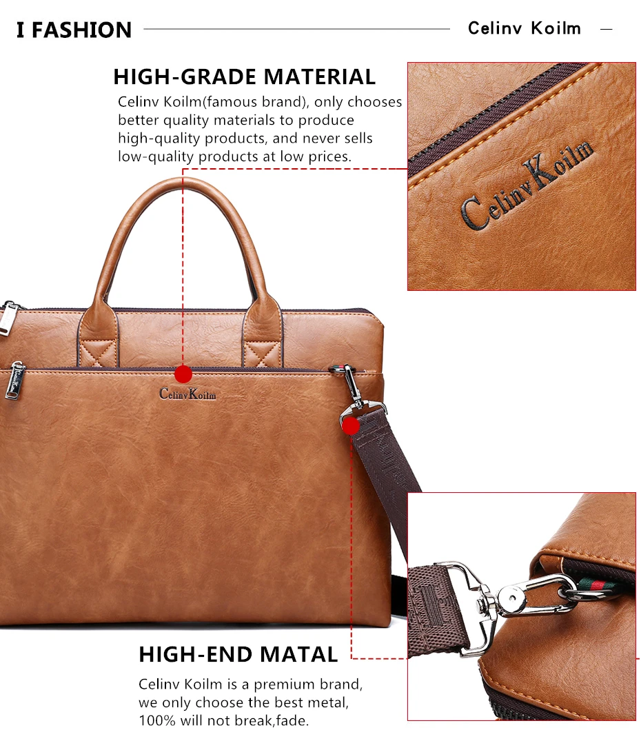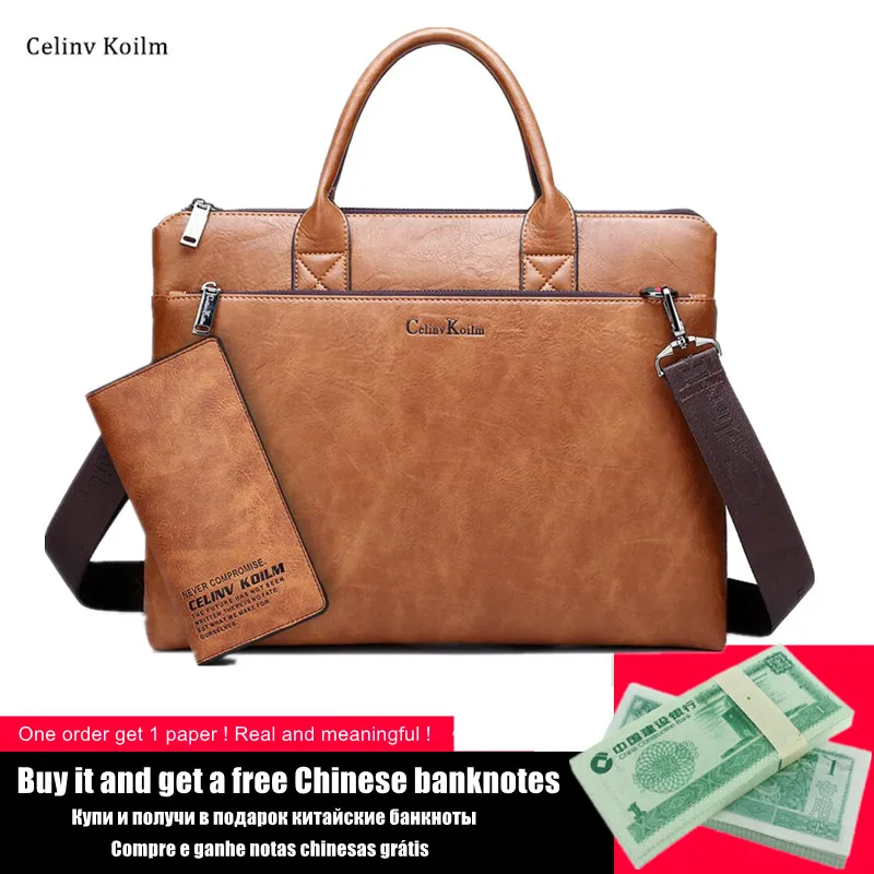 Celinv Koilm высококачественный мужской портфель, набор 14-дюймовых деловых сумок для ноутбука, Кожаные Офисные Сумки На Плечо с большой емкостью