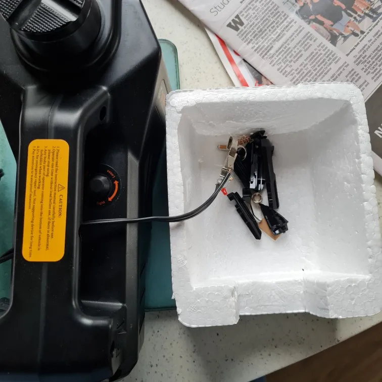 Когда я открывал коробку, штепсельная вилка была разбита на многие части. Поэтому зашли и купили другую вилку, чтобы починить ее за дополнительную плату. Обратите внимание, что свинец не был завязан на ручке, чтобы остановить его падение с стороны домкрата в коробке, так как это все, что нужно, если он раздавлен, он будет сломан.
