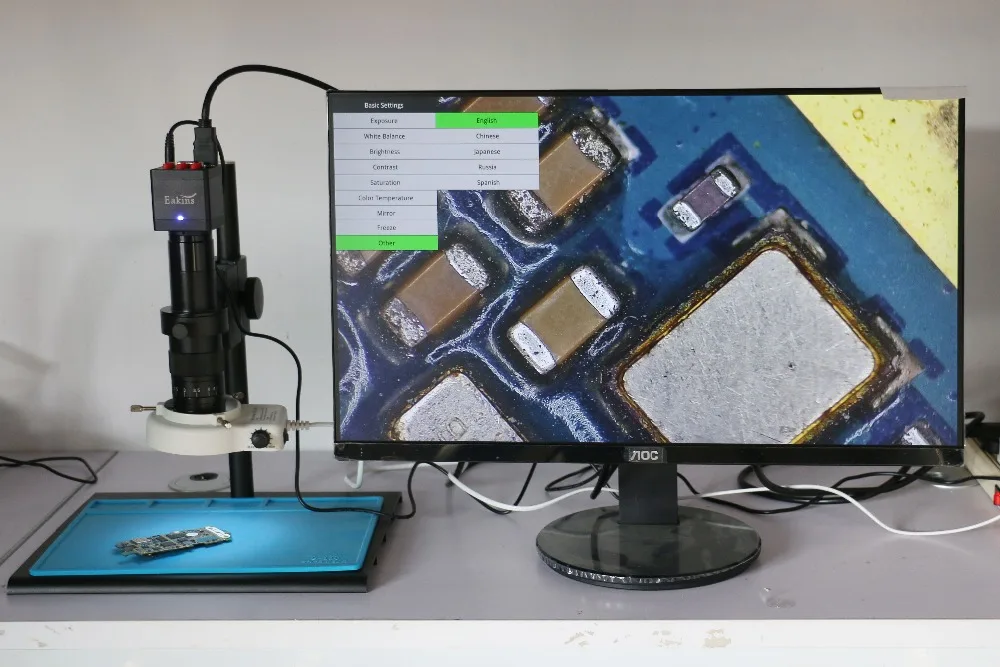 Улучшает качество изображения и цифровое шумоподавление, увеличивает цветопередачу и выход 1080P, поддерживает больше языков, английский, китайский, японский, испанский, русский, очень подходит для пайки PCB SMD телефона.