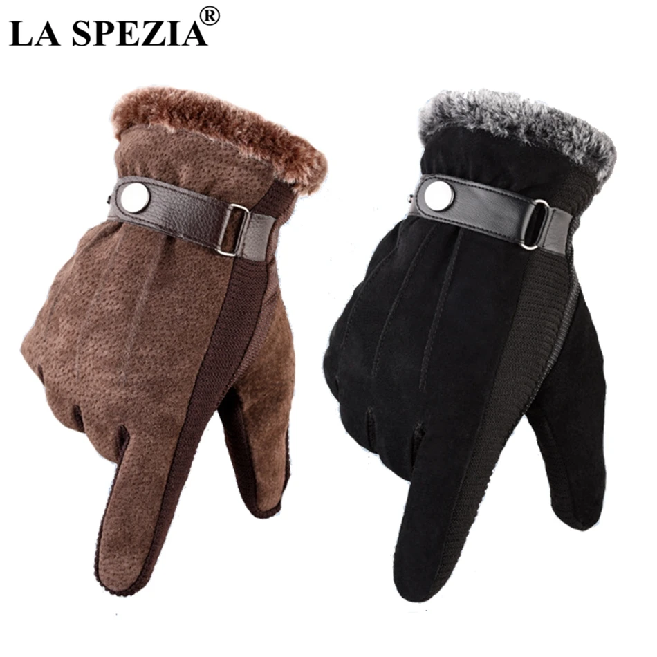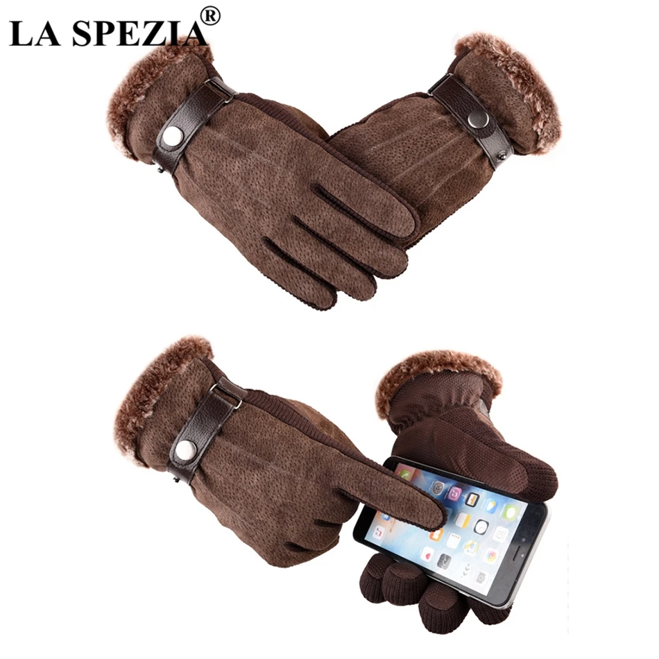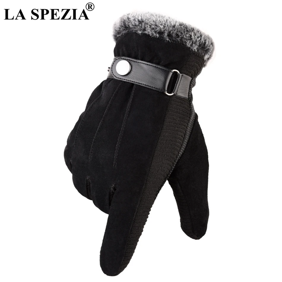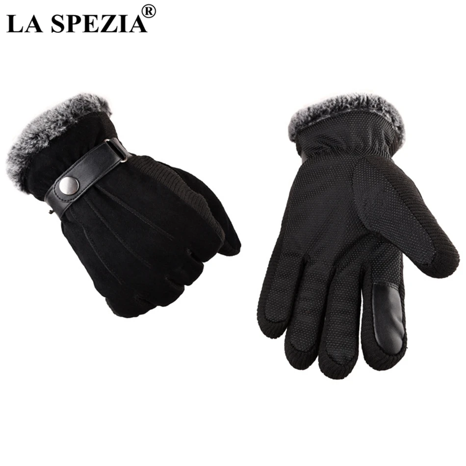 Мужские перчатки из свиной кожи LA SPEZIA, зимние перчатки из натуральной кожи с мехом, мужские водонепроницаемые термоперчатки для сенсорных экранов