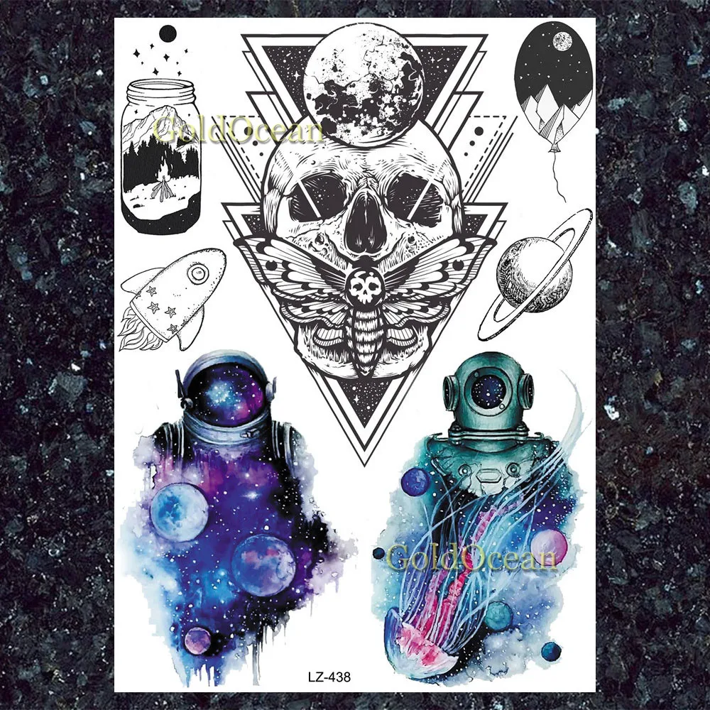 Поддельные геометрические татуировки Galaxy Spaceman, череп смерти, наклейки, тело, рука, рот, шея, временная татуировка, пистолет, гангстер, водостойкая татуировка