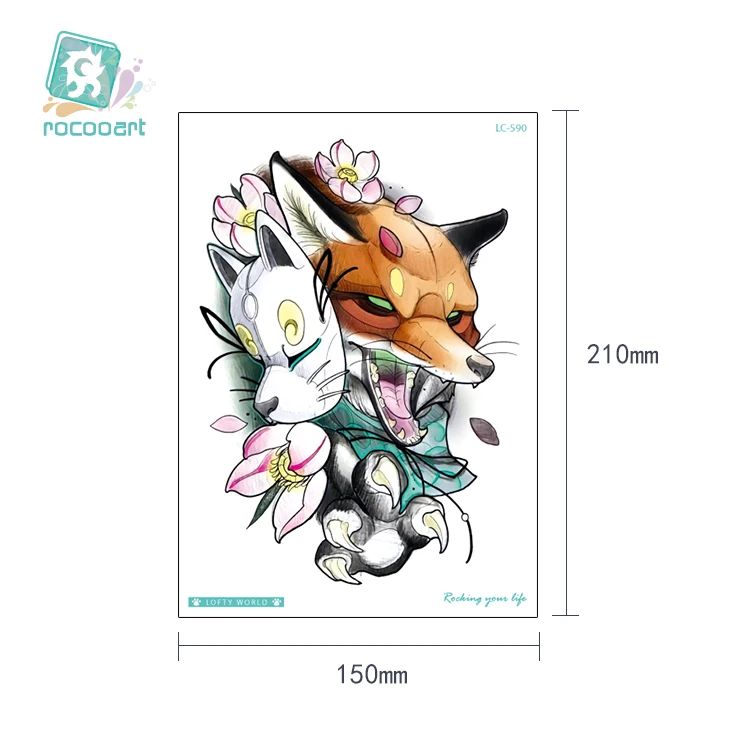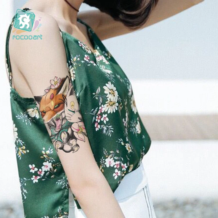 Rocooart, тату с волком, цветок, руки, Тати, кролик, тигр, тату, наклейки для женский боди-арт, водонепроницаемые тату, волк, леопард, поддельные татуировки