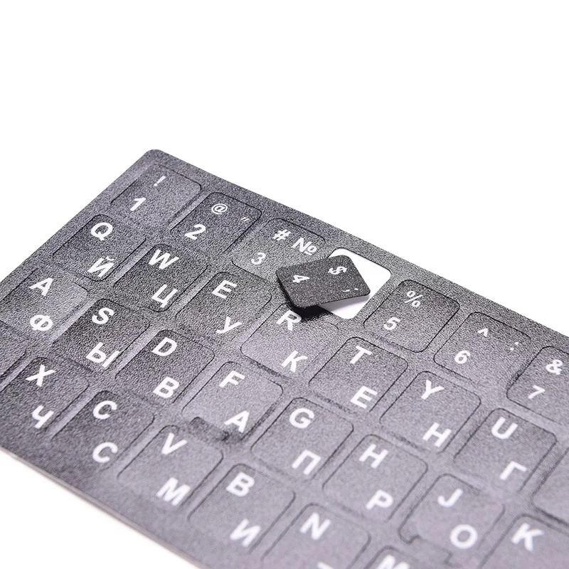1 шт., русская стандартная раскладка стикеров на клавиатуру, прочная черная с белыми буквами, наклейка на клавиатуру для ноутбука, настольного компьютера