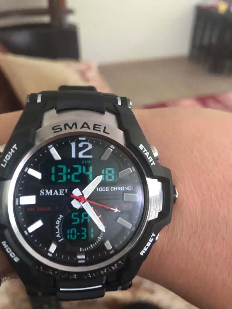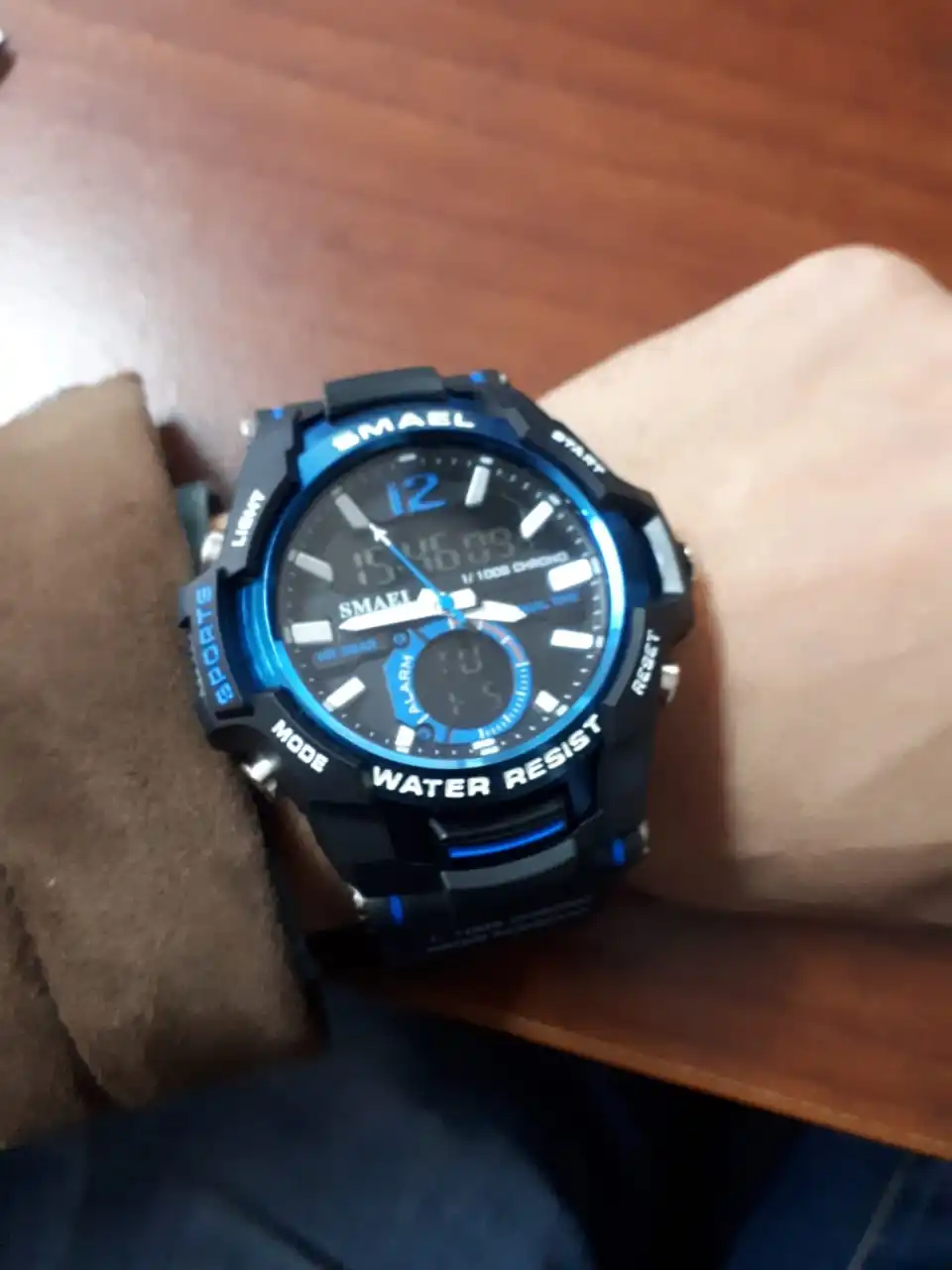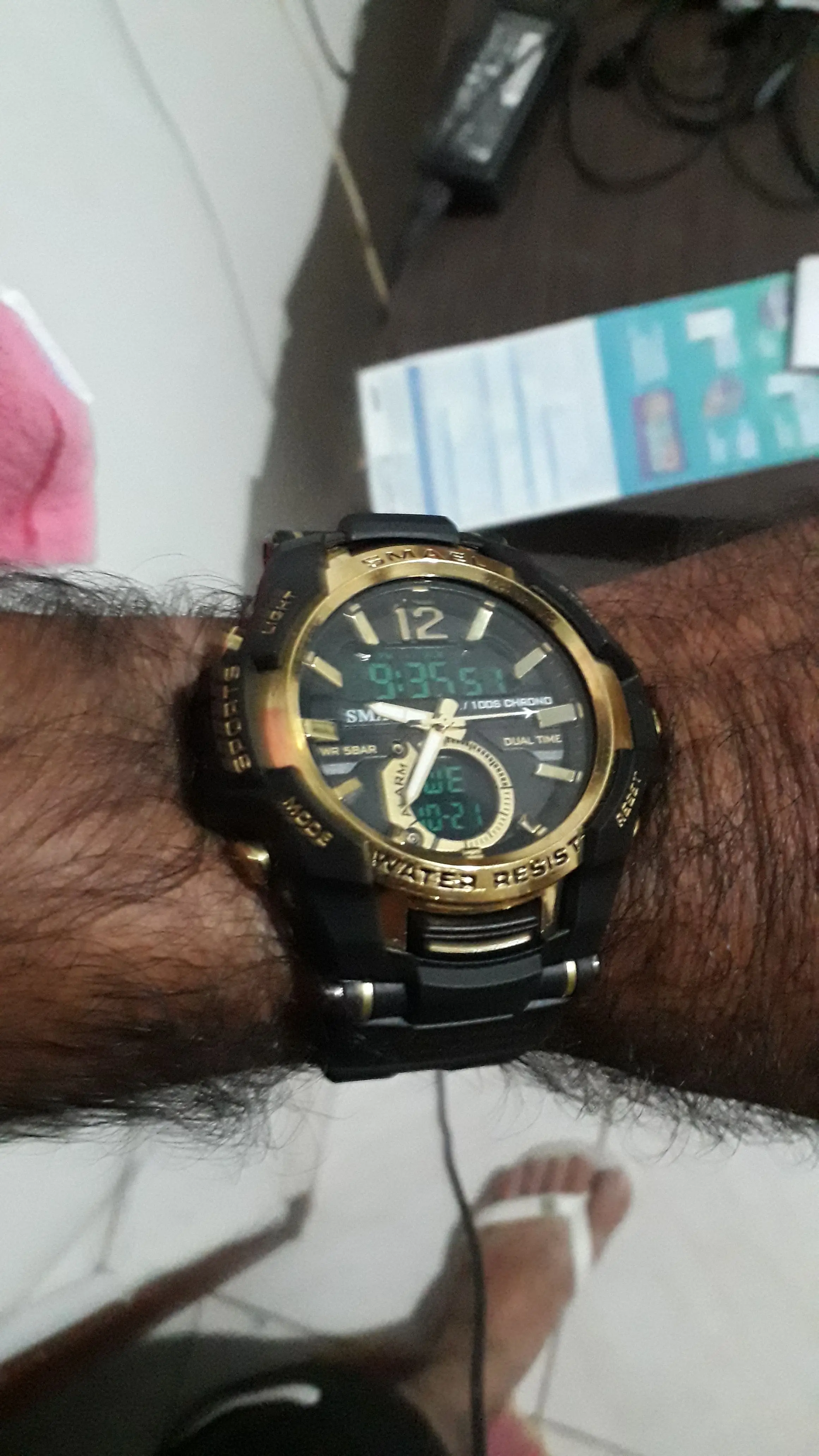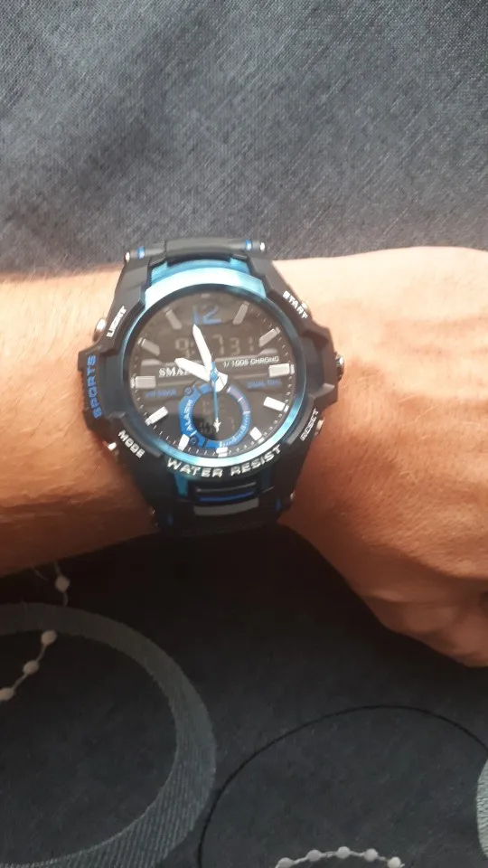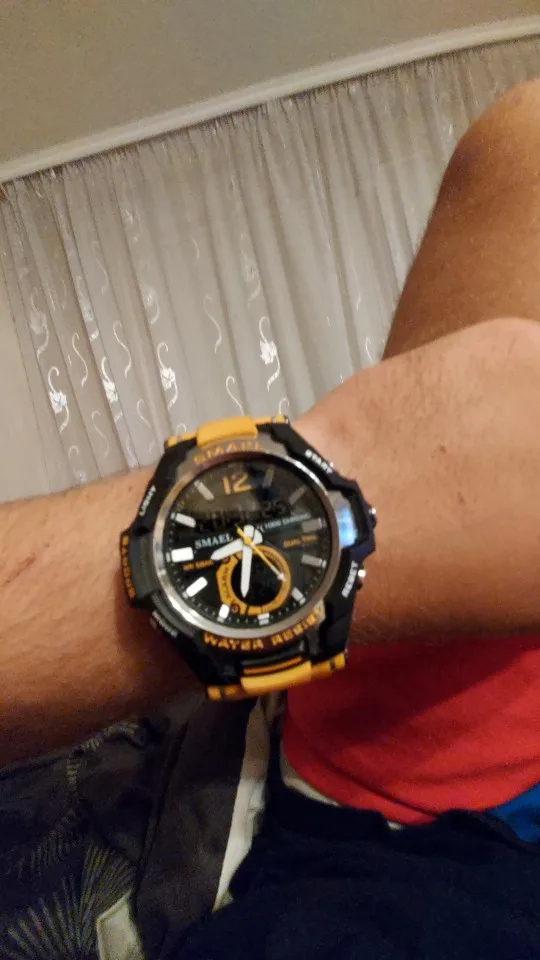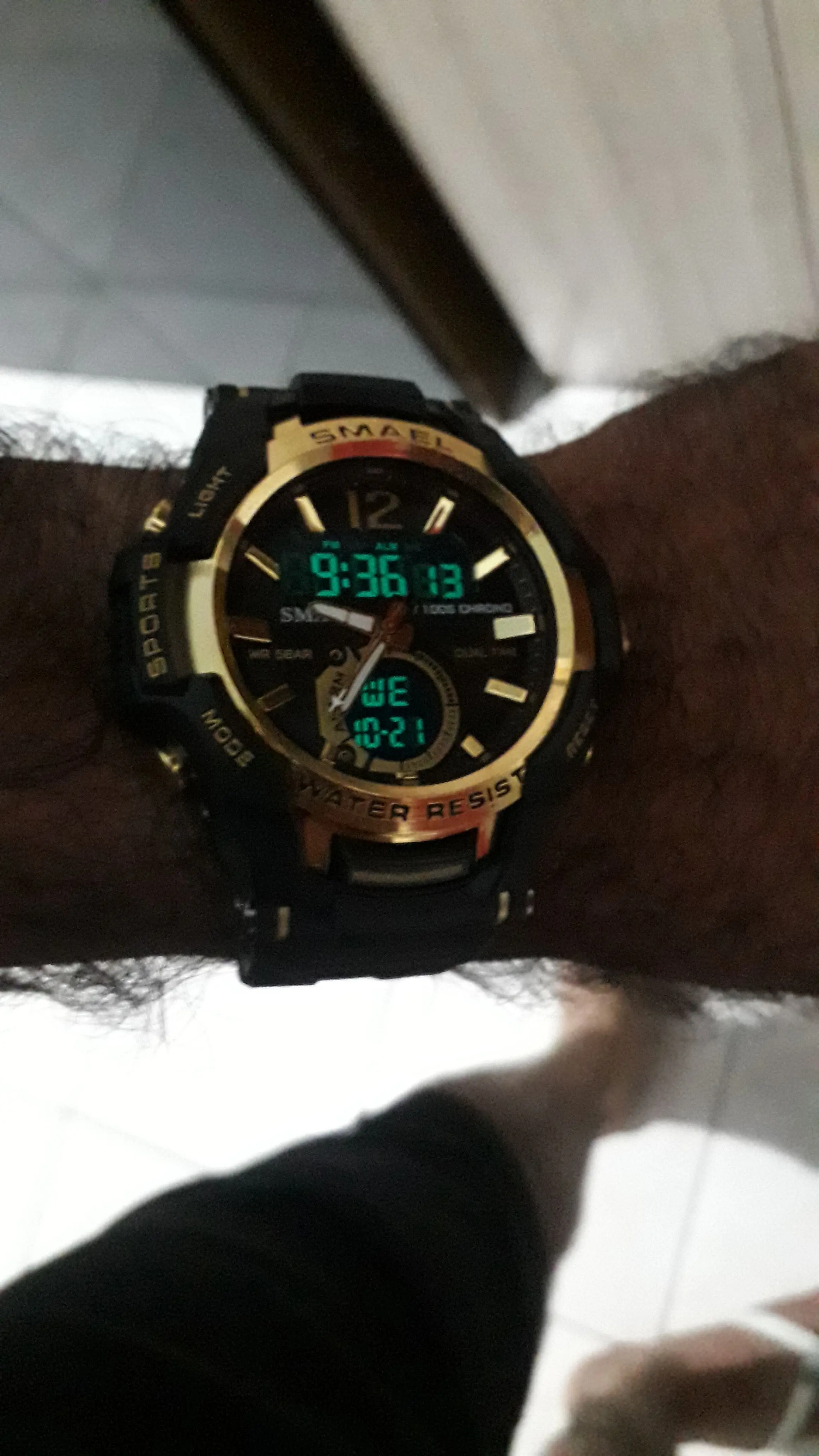 Он прибыл до истечения срока. 15 дней после покупки. Очень эффектно. Отлично выглядит. Цифровые часы не видны, если вы не активируете свет d часы. Это довольно большой размер, поэтому его необходимо учитывать тем, кто любит часы, более сдержанно