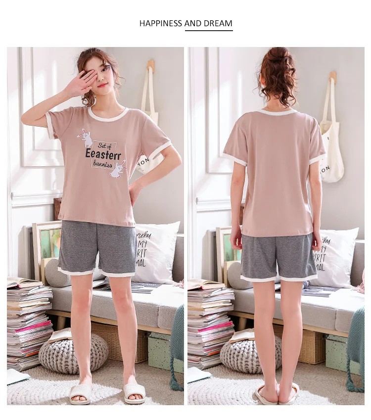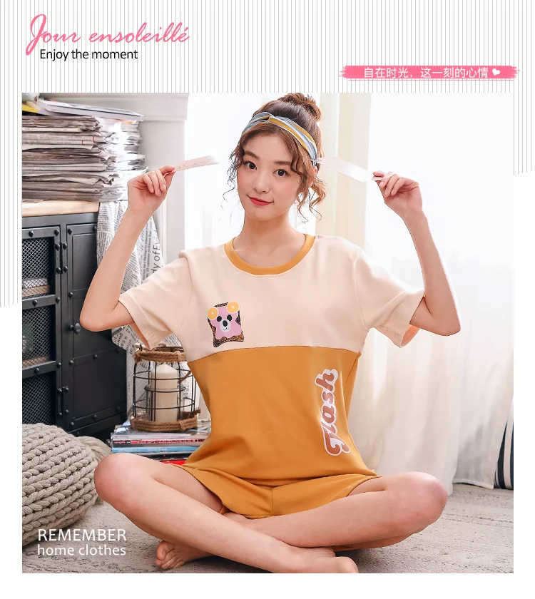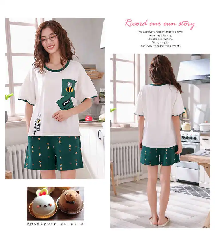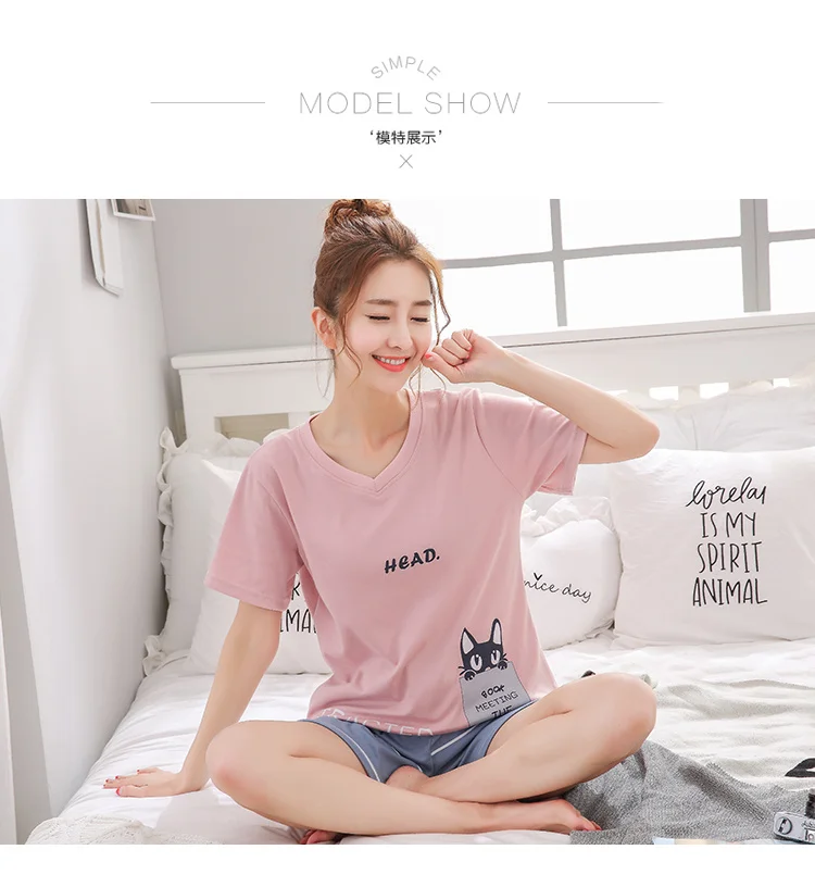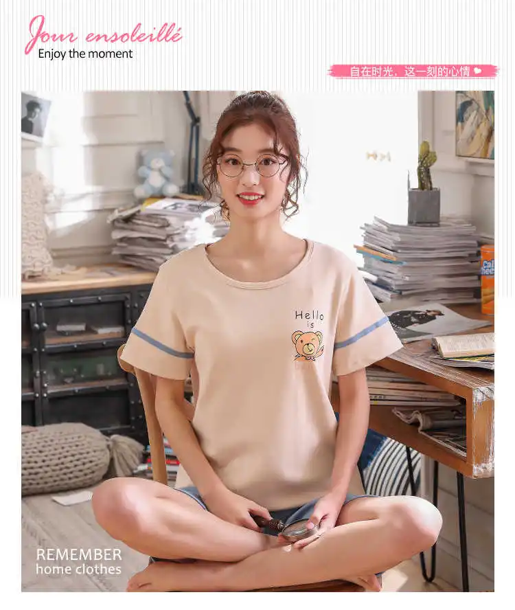 Пижамный комплект, женская пижама, женская одежда для сна, ночная рубашка, Женская домашняя одежда, Женская Повседневная летняя хлопковая одежда для сна с мультяшным рисунком 2022