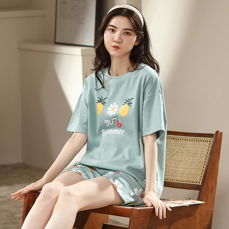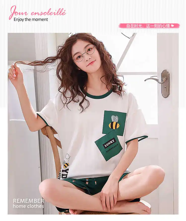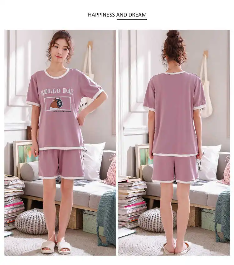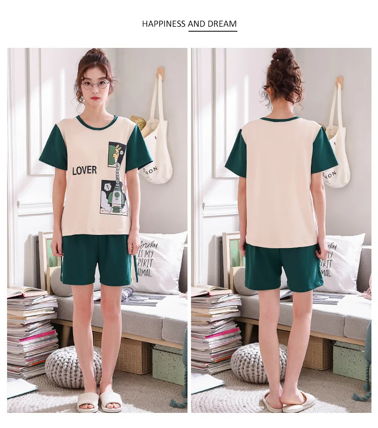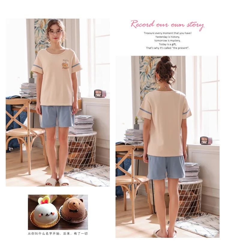 Пижамный комплект, женская пижама, женская одежда для сна, ночная рубашка, Женская домашняя одежда, Женская Повседневная летняя хлопковая одежда для сна с мультяшным рисунком 2022